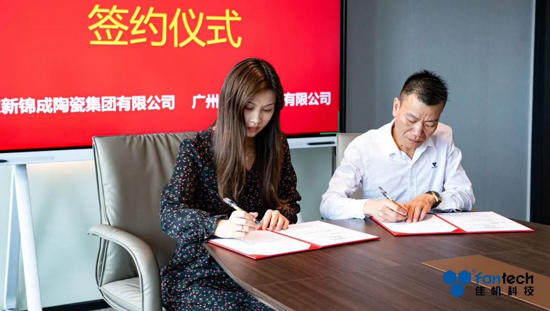 近日,新錦成陶瓷集團與佳帆科技在新錦成總部就數字化智慧物流項目舉行簽約暨啟動儀式,新錦成集團董事長何成健先生、總裁陳雪妹女士、佳帆科技董事長余俊生先生及項目代表出席此次啟動儀式。